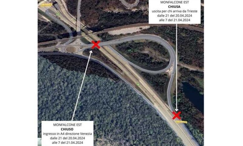 Solo e unicamente durante la prima fase di chiusura della corsia di emergenza e marcia, ovvero tra le ore 21,00 di sabato e le ore 07,00 di domenica sarà necessaria la chiusura delle rampe di Monfalcone Est in entrata e in uscita in direzione Venezia.