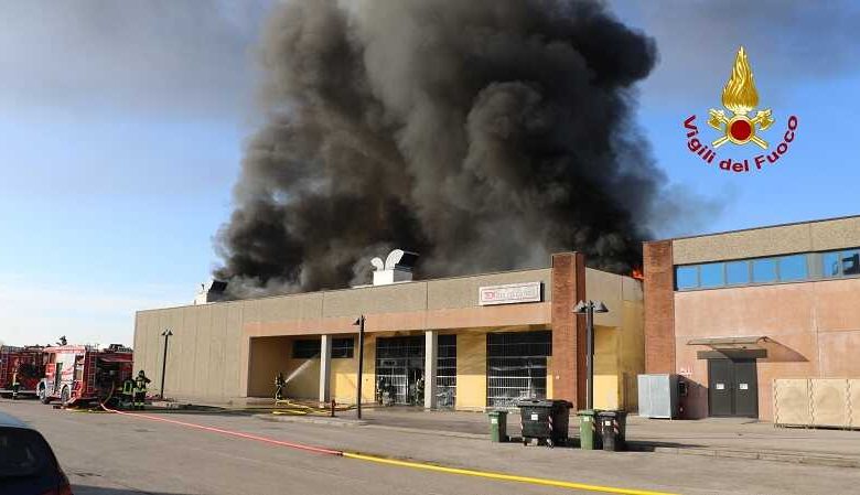 A fuoco azienda tessile. VVF evitano coinvolgimento supermercato