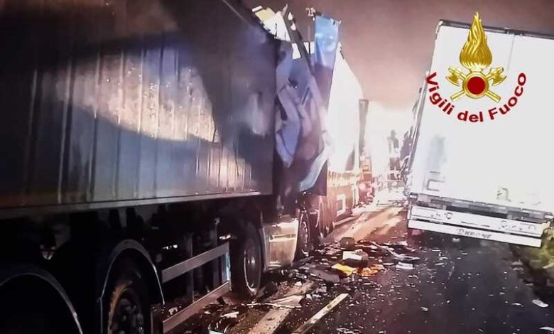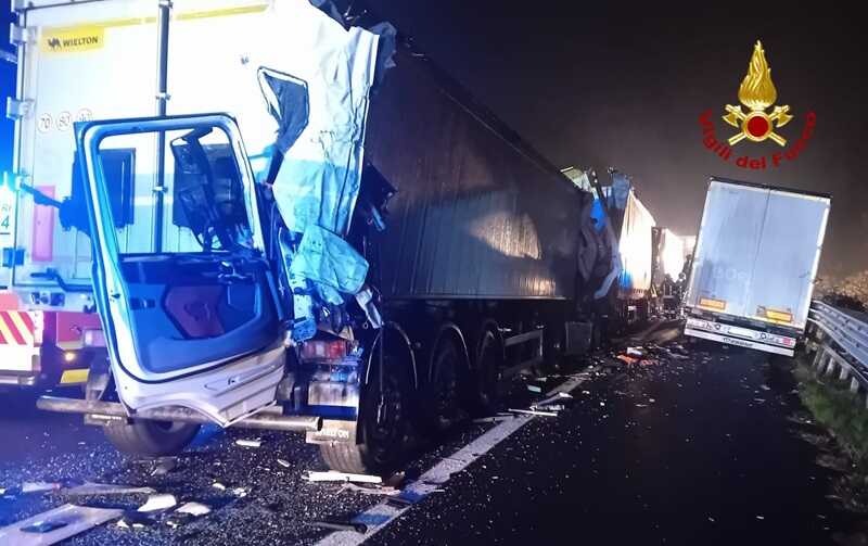 A4 tra Cessalto e S.Stino/grave tamponamento tra 5 Tir : 1 morto e 1 ferito
