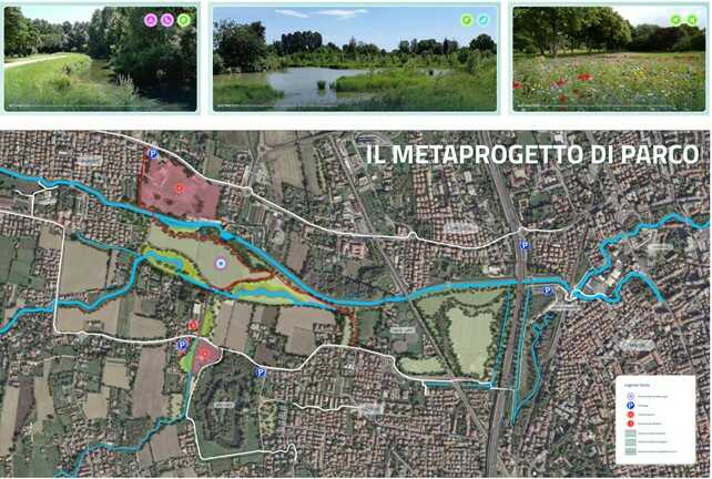 L’intervento di rinaturalizzazione valorizza il paesaggio urbano e restituisce ai cittadini ampi spazi verdi a uso ricreativo, con aree a prato e a bosco, zone umide e specchi d’acqua. I diversi ambiti del parco saranno collegati da percorsi pedonali e ciclo-pedonali.