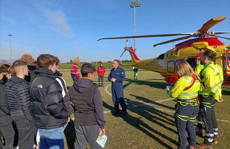 Successivamente, sotto la guida tecnica del personale della Protezione Civile regionale, insieme ai vigili del fuoco, alle forze locali di polizia, ai sanitari, ai gruppi locali di Protezione Civile, gli studenti si sono portati presso l’ara dello stadio Opitergium dove, come da tradizione, sono stati presentati i diversi mezzi d’emergenza intervenuti e le loro funzionalità. Spazio poi all’atterraggio di Falco, l’elicottero del Suem 118 con la simulazione di un soccorso.