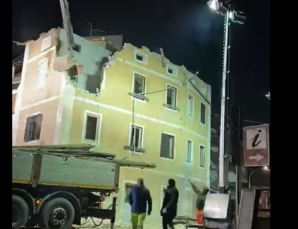 Alemagna: nella notte iniziato l’abbattimento del fabbricato sulla curva a Valle di Cadore