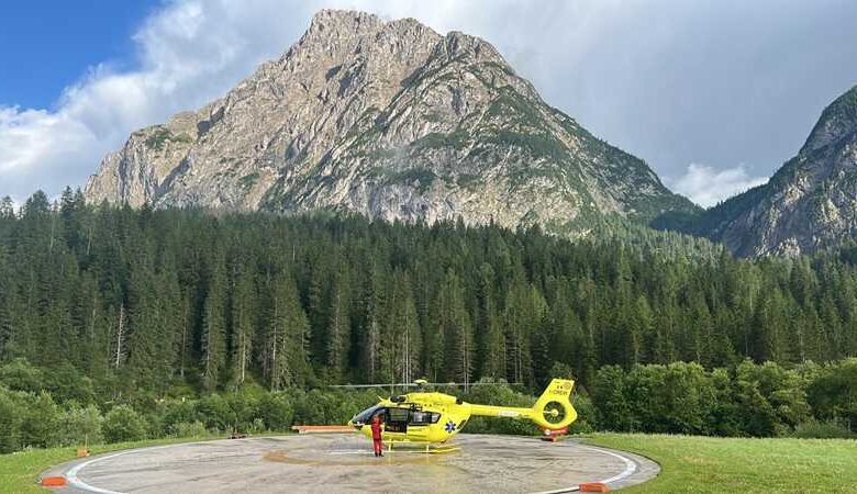 L’elicottero dell’elisoccorso regionale con a bordo tecnici della stazione di Sappada ha effettuato il recupero dei due alpinisti al verricello uno alla volta.