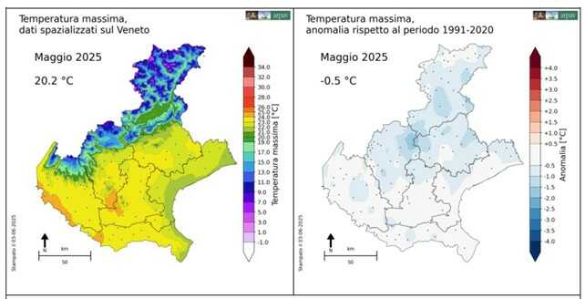 E’ la sorpresa – ma molti se n’erano accorti – del mese di maggio 2025, analizzato dagli esperti meteo dell’Arpav.
