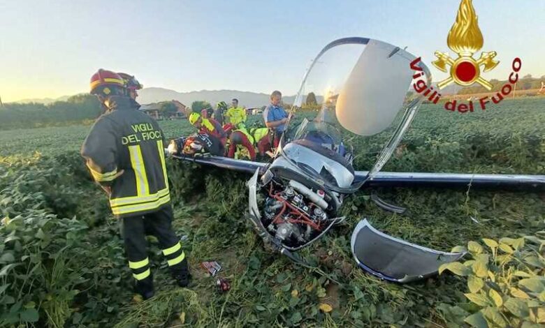 Nel pomeriggio di venerdì, i Vigili del Fuoco di Castelfranco sono intervenuti in un campo di soia nei pressi di via Lauro ad Asolo, dove un ultra leggero è precipitato.