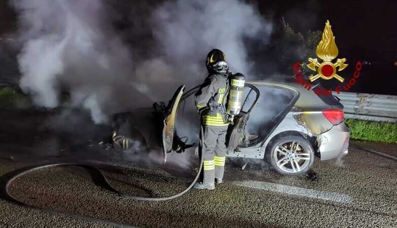 Una BMW ha preso fuoco mercoledì sera, intorno alle 21:30, nel tratto libero della A57 Tangenziale di Mestre, poco prima della barriera in direzione Trieste.