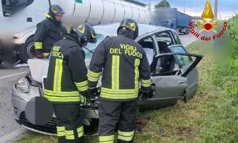 All’arrivo sul posto dei Vigili del fuoco l’autista, illeso, del mezzo pesante era già all’esterno del proprio veicolo mentre il conducente dell’autovettura era intrappolato all’interno dell’abitacolo.