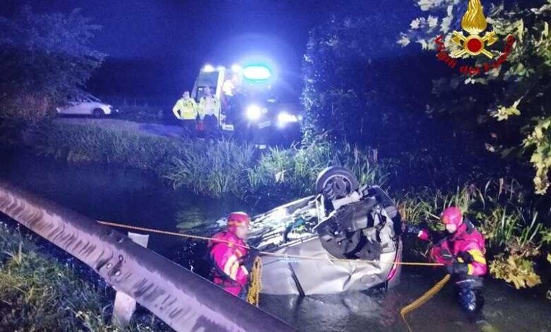 Auto finisce rovesciata in un canale d’acqua: conducente salvato da un giovane