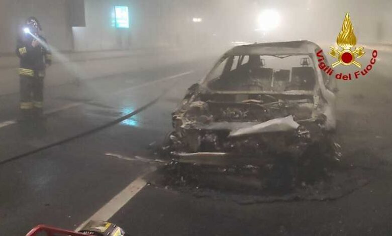 Auto in fiamme in galleria dopo incidente in Pedemontana Veneta: illese le quattro persone a bordo