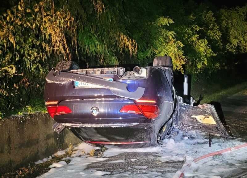 Auto si ribalta e prende fuoco: miracolati i cinque a bordo