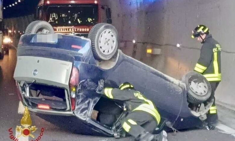Auto si ribalta nella galleria Monte Baldo in A27. Traffico bloccato e conducente ferito leggermente ferito