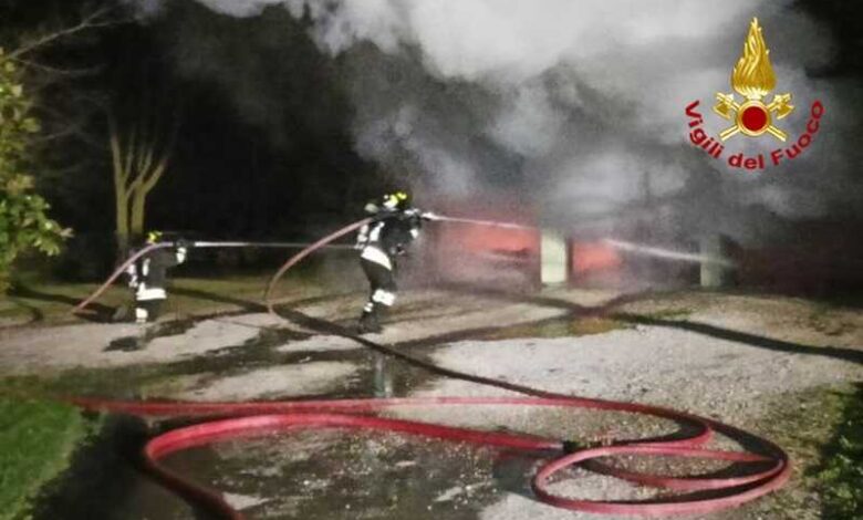 All’arrivo sul posto dei Vigili del fuoco, le fiamme avevano già coinvolto le due vetture parcheggiate all’interno del garage; i VVF hanno spento l’incendio evitandone la propagazione alla vicina abitazione e hanno portato all’esterno alcune bombole di GPL che si trovavano all’interno della struttura incendiata.