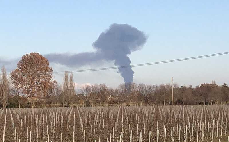 In foto, la colonna di fumo nero visibile da Oderzo.