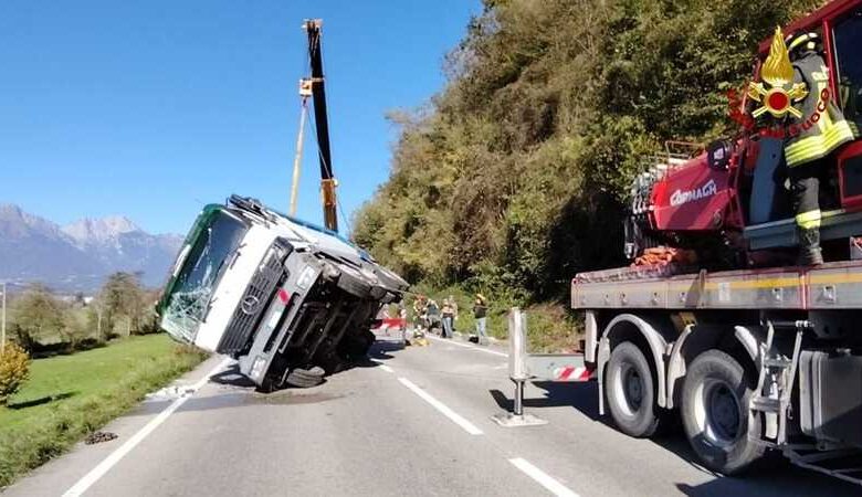 Belluno: autoarticolato si ribalta sulla SP1 sinistra Piave: strada interrotta per 4 ore