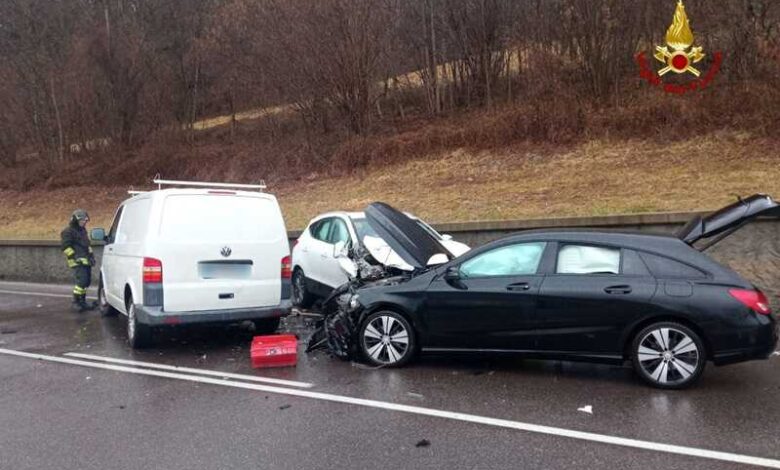 Pioveva questa mattina poco dopo le 7:30, di lunedì 4 marzo, quando i vigili del fuoco sono intervenuti lungo la SP1, prima della rotonda che immette anche nella galleria di Col Cavalier alla periferia di Belluno per un incidente stradale tra tre auto.