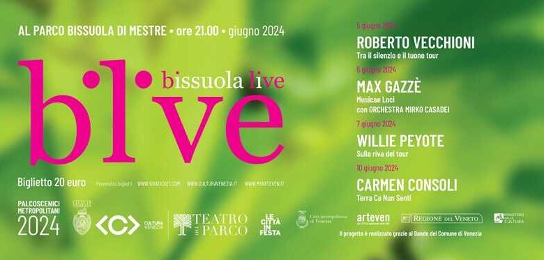 Tornano i concerti di Bissuola Live con Roberto Vecchioni, Max Gazzè insieme all’Orchestra Casadei, Willie Peyote, Carmen Consoli nella cornice estiva del teatro, negli spazi del Parco Bissuola di Mestre. Quattro appuntamenti con quattro interpreti della musica italiana per dare il via ad una nuova stagione estiva di grande spettacolo.