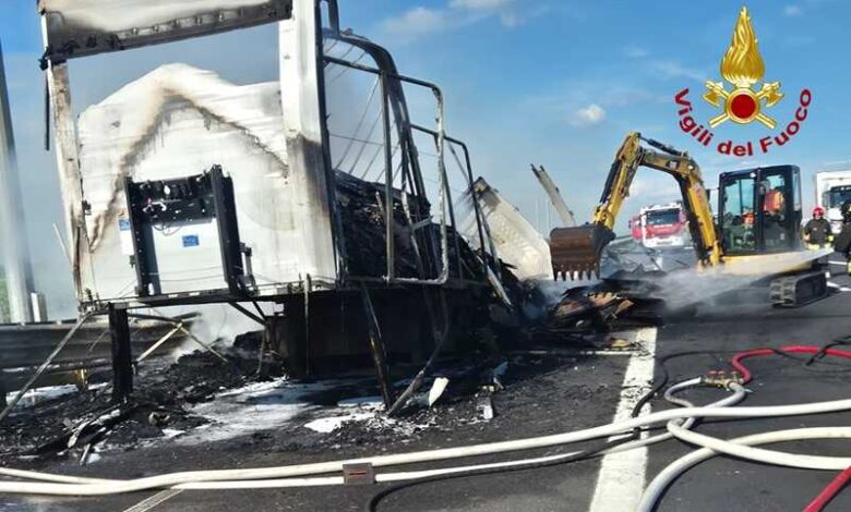 Camion a fuoco sull’autostrada A4 Venezia-Trieste