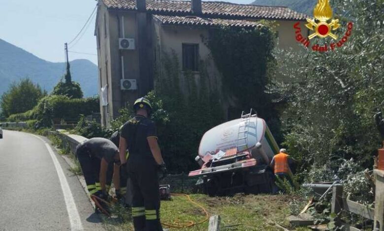 Il mezzo, fortunatamente scarico, ha però impattato contro una colonnina del gas in media pressione, procurandone la rottura e la conseguente fuoriuscita, per poi terminare la sua corsa finendo in un affluente del fiume Brenta, precipitando per circa 3 metri.