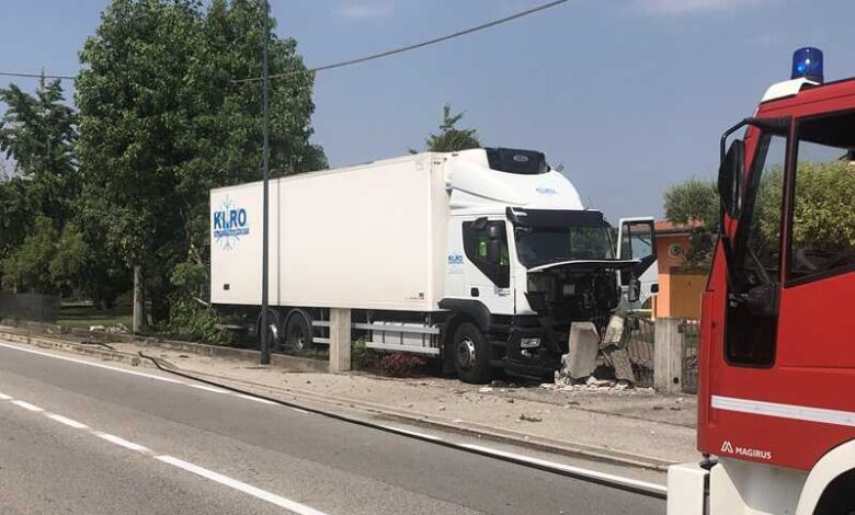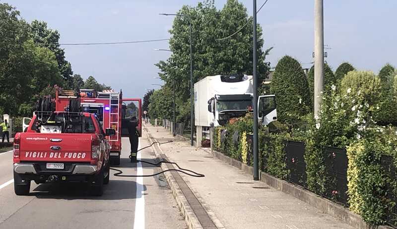 Per cause in corso di accertamento da parte dei Carabinieri di Susegana, intervenuti sul posto, erano le 14:45 quando il camionista ha perso il controllo del mezzo pesante che è sbandato sulla sinistra e dopo aver attraversato la pista ciclabile, ha divelto il muro di cinta di una villetta e ha terminato la corsa contro un pilastro che conteneva anche il contatore del metano.