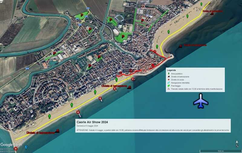 Si informa che nelle giornate di sabato 4 e domenica 5 maggio sono previste limitazioni alle attività di balneazione, navigazione e simili in concomitanza con il Caorle Air Show