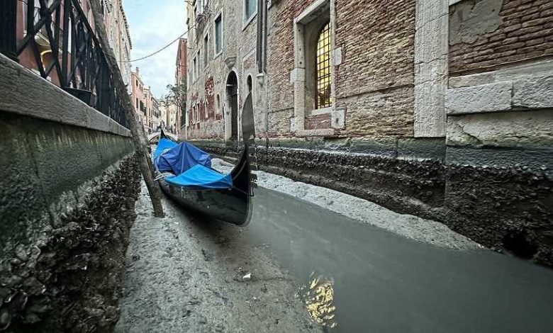Le difficoltà restano grandi, le barche ormeggiate sono in secca e le fondamenta dei palazzi diventano in vista.
