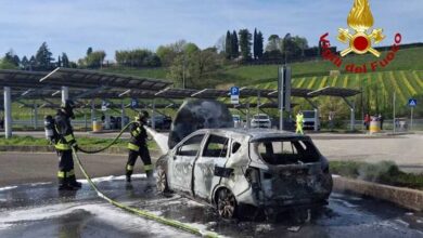 Auto a fuoco nell’area di servizio Cervada Est lungo A27