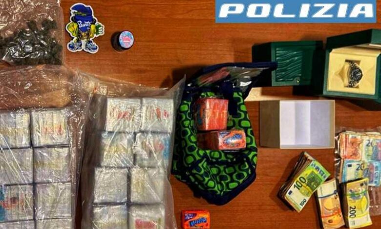 Oltre allo stupefacente, rinvenuto sia nell’auto sia in casa, i poliziotti della Squadra Mobile hanno trovato anche 33 mila di denaro contante occultato nella cappa di cucina, e un foglio riportante l’indicazione delle operazioni contabili relative alla cessione dello stupefacente, nascosto all’interno del manico di una spazzola per capelli.