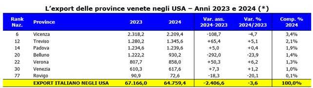 CGIA: i dazi USA costano 2 miliardi al Veneto