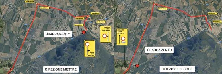 Chiusura notturna della Sp 43 Portegrandi-Jesolo per lavori di manutenzione