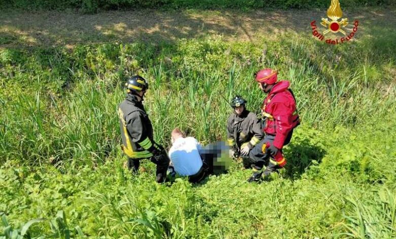 I pompieri hanno collaborato con i soccorritori del 118 per recuperare il ferito dalla scomoda posizione in cui era finito e per il trasporto in barella fino al piano stradale da dove è stato poi trasferito in ambulanza in ospedale.