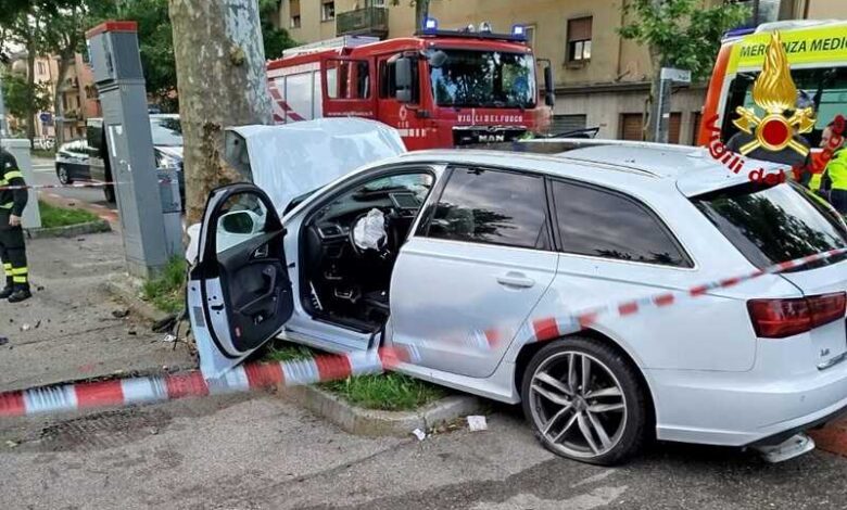 La corsa della vettura si è conclusa impattando violentemente contro un platano.