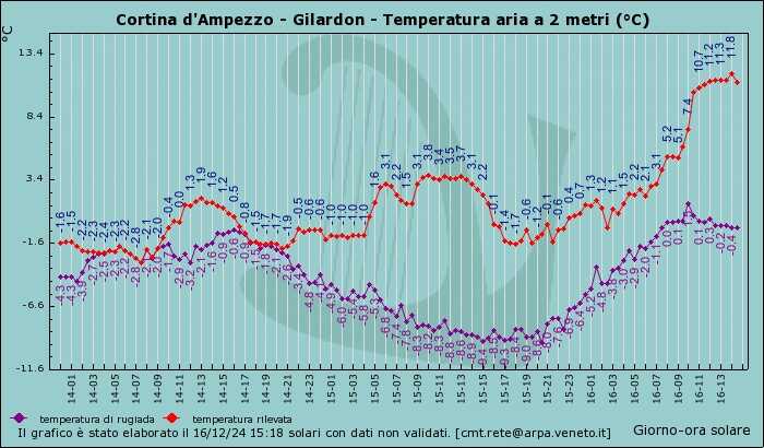 Già quest’oggi lunedì, valori gradevoli di giorno in montagna (vedi Cortina) 11,8°C,