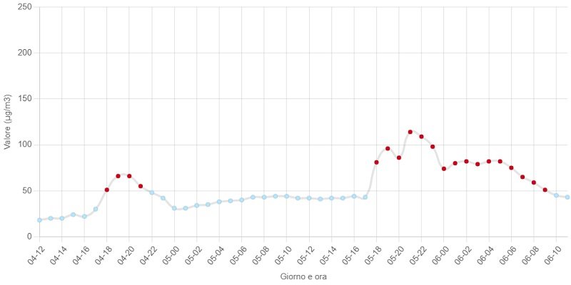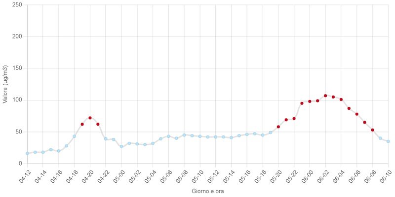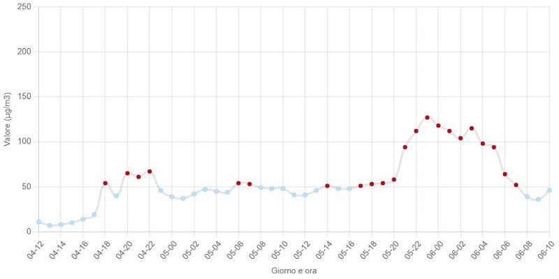 Già alle 10 del mattino i valori si sono riportati sotto quota 50 microgrammi, rientrando a livello 0.