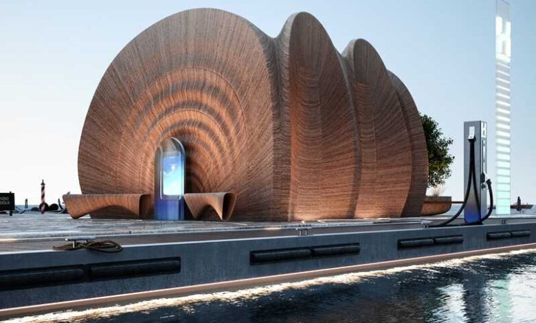 Il concept architettonico della nuova stazione di rifornimento è stato ideata e progettata da Zaha Hadid Architects e prevederà, tra l’altro, l’installazione dell’impiantistica idrogeno in una struttura innovativa stampata con tecnologia 3D.