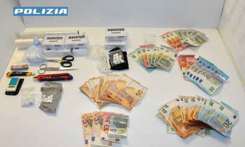 Sono state ritrovate una quarantina di dosi di cocaina, diversi etti di sostanza da taglio, bilancini di precisione, oltre a 2 mila euro in contanti, presumibile provento dell’attività di spaccio.