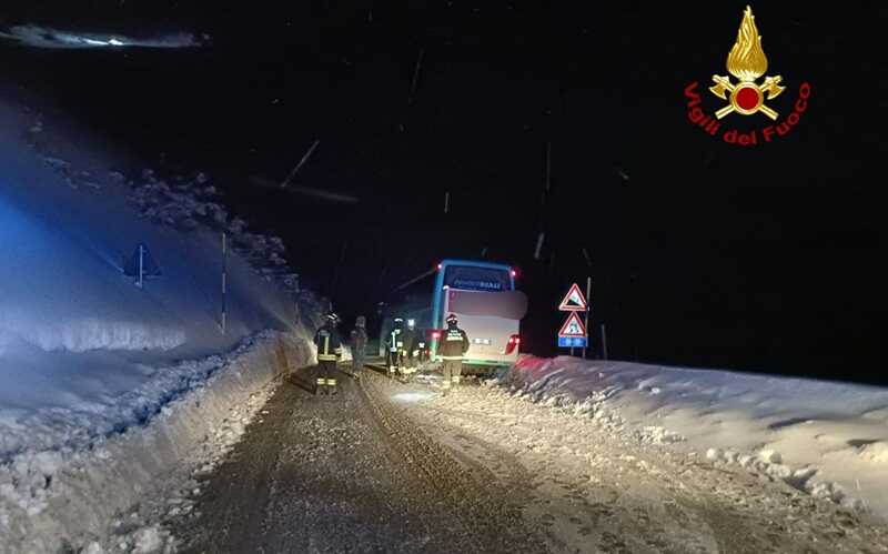 Il maltempo delle scorse ore ha visto durante la giornata di domenica, nell’alta provincia di Belluno, i Vigili del Fuoco soccorrere diversi mezzi, anche un pullman in difficoltà per la strada ghiacciata.