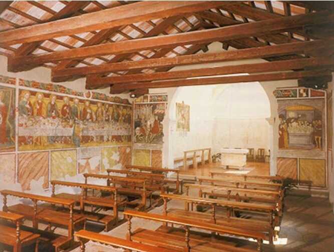 All’anno 1466 si fa risalire la realizzazione del ciclo di affreschi dell’aula, attribuiti a Giovanni di Francia.