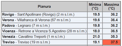 Le città di pianura, a metà via tra mare e montagna, hanno risentito maggiormente l’esposizione al calore con Treviso che è stato il capoluogo di provincia più “bollente” con 37,5° C. E l’effetto caldo sulle persone più anziane non ha tardato a manifestarsi, ben 15 pazienti si sono rivolti al pronto soccorso con problematiche legate a sincopi o disidratazioni.