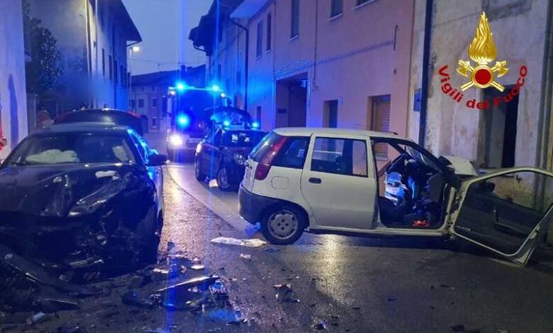 Mancavano invece pochi minuti alle 5 quando due autovetture si sono scontrate frontalmente a Bressa di Campoformido. Su una Fiat Punto viaggiava un giovane 22enne e su una Maserati un uomo di 54 anni.