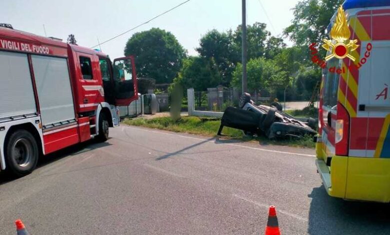 Fontanafredda: due auto finiscono rovesciate dopo un incidente. 2 i feriti
