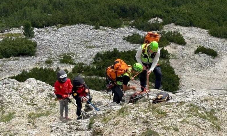 I soccorritori hanno dato le loro giacche ai bambini e, dopo aver assicurato genitori e figli, li hanno calati a terra per una cinquantina di metri, per poi accompagnarli alla loro macchina al parcheggio al Passo di Valparola.