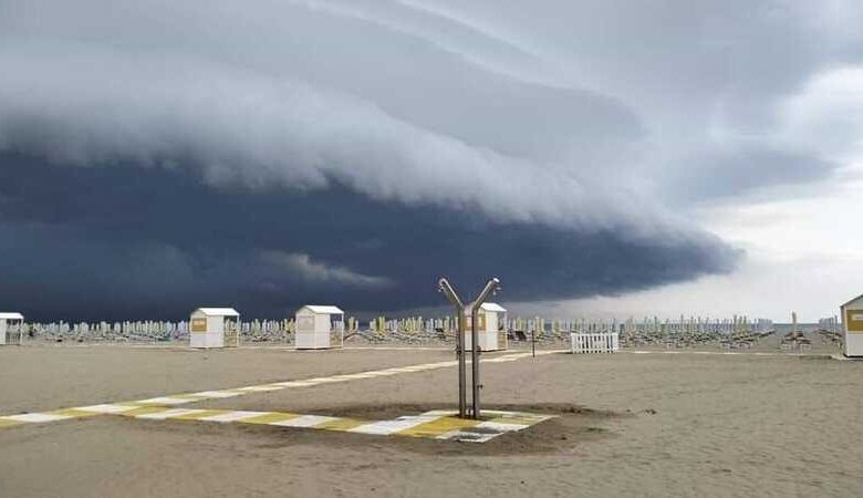 Sono stati molti i bagnati della spiaggia di Caorle a immortalare quella strana nube che si muoveva verso Bibione dove ci sono stati degli allagamenti con alberi abbattuti.