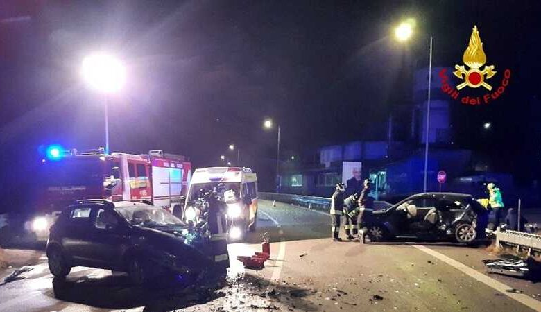 Due autovetture sono entrate in collisione frontale, evidentemente per un’invasione di corsia, causando un impatto molto violento.