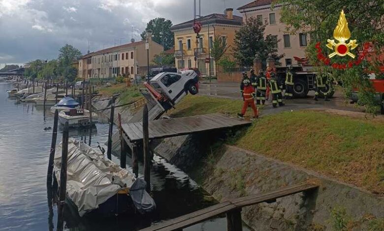 Il mezzo probabilmente parcheggiato senza freno a mano si è mosso autonomamente finendo in acqua.