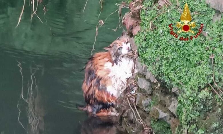 Camy, una bellissima gatta, quando ha capito che la sua padrona la stava portando dal veterinario, è fuggita e si è tuffata nel Bacchiglione dal ponte di Viale Dalviano a Vicenza. Dopo il tuffo, è riuscita a risalire su un minuscolo spiazzo appena sopra il livello dell’acqua, restando però bloccata e infreddolita.