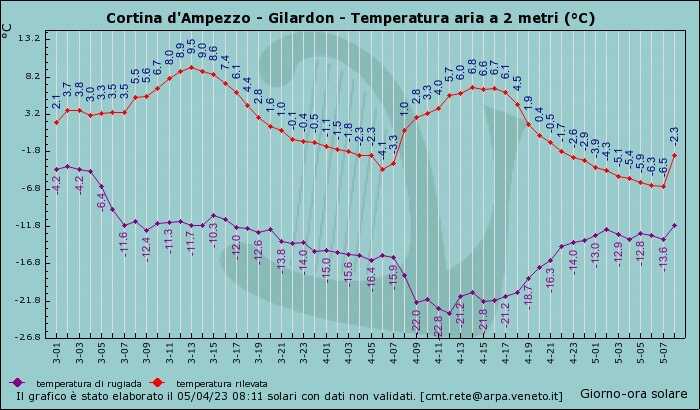 Un inizio aprile decisamente sotto le medie del periodo con un primo assaggio già ieri mattina ma il clou si è registrato stamane con estese gelate notturne che hanno interessato la zona montana (Cortina d’Ampezzo -6,5),