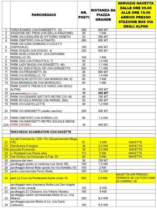 Per l’occasione ci sarà il servizio navetta, in arrivo presso stazione bus che collegherà il centro con i parcheggi scambiatori: