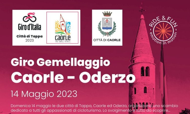 Domenica 14 maggio le due città di Tappa, Caorle ed Oderzo, organizzano un “gemellaggio” dedicato a tutti gli appassionati di cicloturismo e di bici.