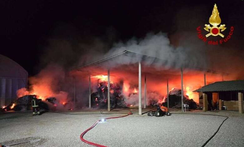 Sono intervenuti in forze i vigili del fuoco che a partire dalle 22:20 di giovedì 29 agosto sono stati impegnati per spegnere incendio divampato nel deposito di un’azienda agricola con circa 700 quintali di balle di fieno in via Belfiore, a Gruaro.