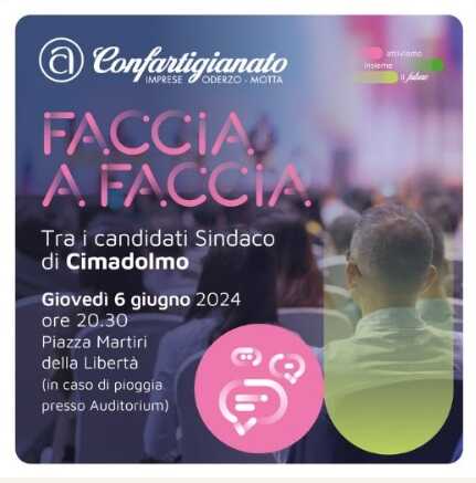 I Faccia a Faccia si concluderanno giovedì con Cimadolmo dove in Piazza Martiri della Libertà si confronteranno il sindaco uscente Giovanni Ministeri e Roberto Perin.